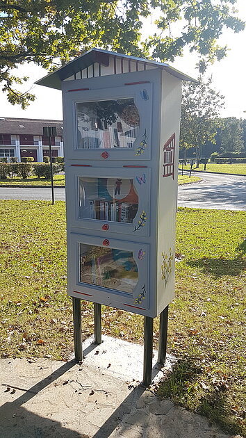 Construite par une équipe de Jatsuar à partir d’un ancien meuble de cuisine qui aura trouvé ici une seconde vie, cette boîte à livres a ensuite été minutieusement décorée avec le concours des enfants du périscolaire. De l’avis de tous, elle est magnifique.